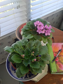 My violets decided to bloom again. After that business of lopping their heads off I could tell they had survived but I guess this is proof of how very well they liked it! I reckon every girl likes a haircut no matter how drastic.